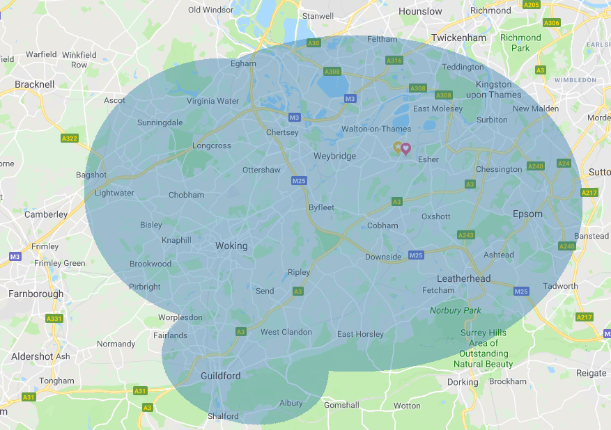GU1, GU2, GU3, GU4, GU5, GU6, GU7, GU8, GU9, 10, GU11, GU12, GU13, GU14, GU15, GU16, GU17, GU18, GU19, GU20, GU21, GU22, GU23, GU24, GU25, KT1, KT2, KT3, KT4, KT5, KT6, KT7, KT8 , KT9, KT10, KT11, KT12, KT13, KT14, KT15, KT16, KT17, KT18, KT19, KT20, KT21, KT22, KT23, KT24, SW13, SW14, SW15, SW16, SW17, SW18, SW19, SW20. TW1, TW2, TW3, TW4, TW5, TW6, TW7, TW8, TW9, TW10, TW11, TW12, TW13, TW14, TW15, TW16, TW17, TW18, TW19, TW20, Addlestone, Aldershott, Ash, Ashford, Ashtead, Bagshot, Barnes, Berrylands, Bisley Brentford, Burpham, Byfleet, Chertsey, Chessington, Chobham, Claygate, Cobham, Earlsfield, East Horsley, East Molesey, East Sheen, Effingham, Egham, Egham Hythe, Elmbridge, Englefield Green, Epsom, Esher, Ewell, Ewhurst Green, Farnborough, Farnham, Feltham, Fetcham, Frimley Green, Goldsworth Park, Guildford, Ham, Hampton, Hampton Wick, Hanworth, Headley, Heathrow, Hersham, Heston, Hinchley Wood, Hook, Hook Heath, Horsell, Horton, Hounslow, Isleworth, Kew, Kingston-Upon-Thames, Knaphill, Langley Vale, Leatherhead, Lightwater, Long Ditton, Lyne, Malden Rushett, Mayford, Merrow, Merton, Merton Park, Motspur Park, New Haw, New Malden, Norbiton, Normandy, North Sheen, Ockham, Old Malden, Old Woking, Osterley, Oxshott, Petersham, Pirbright, Putney, Pyrford, Raynes Park, Richmond, Ripley, Roehampton, Runneymede, Send, Shepperton, Southfields, St. John’s, St. Margarets, Staines, Stanwell, Stoke Park, Stoneleigh, Strawberry Hill, Sunbury-on-Thames, Surbiton, Teddington, Thames Ditton, The Bookhams, Thorncombe Street, Tolworth, Tooting, Virginia Water, Walton-on-Thames, Wentworth, West Byfleet, West Ewell, West Horsley, West Molesey, West Wimbledon, Weston Green, Weybridge, Wimbledon, Windlesham, Wisley, Witley, Woking, Worcester Park, Wraysbury & all surrounding areas